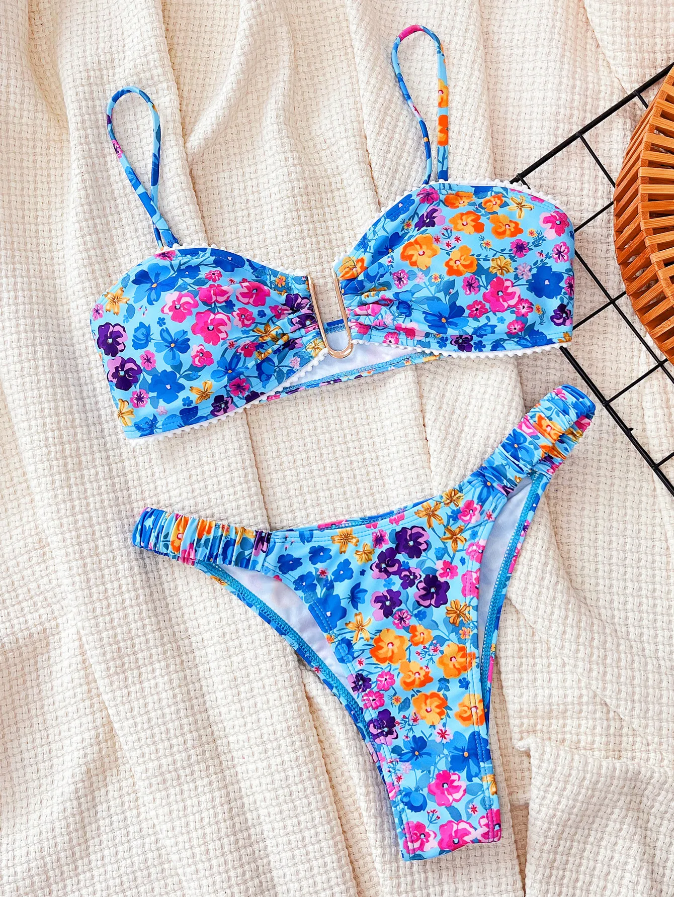 Small Moq Bikinis Floral Printed Beachwear Designer Swimwear